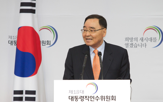 8일 오전 정홍원 국무총리지명자가 삼청동 인수위원회에서 기자회견을 하고 있다. 사진 임준선 213.02.08