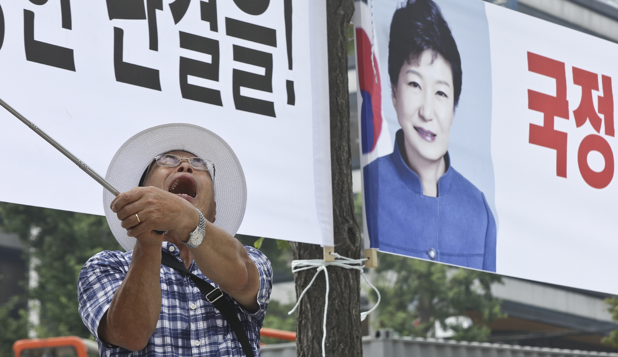 [서울=eoimage] 고성준 기자 = 박근혜 전 대통령의 국정원 특활비 상납 관련 1심 선고공판일인 20일 오후 서울 서초구 서울중앙지방법원 앞 박사모 회원들이 태극기를 들고 박근혜 전 대통령 석방을 외치고 있다. 2018.7.20 고성준 기자