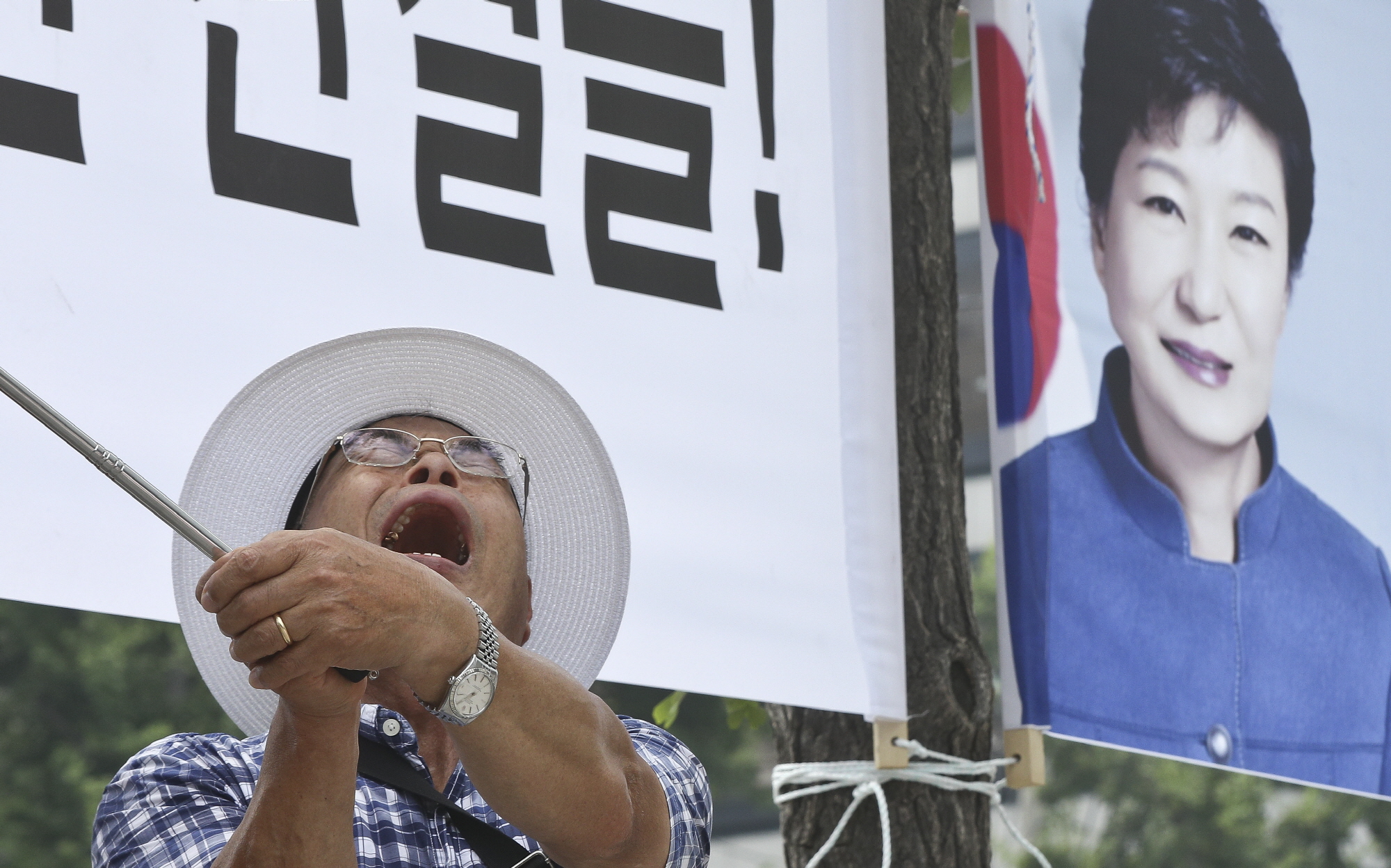 [서울=eoimage] 고성준 기자 = 박근혜 전 대통령의 국정원 특활비 상납 관련 1심 선고공판일인 20일 오후 서울 서초구 서울중앙지방법원 앞 박사모 회원들이 태극기를 들고 박근혜 전 대통령 석방을 외치고 있다. 2018.7.20 고성준 기자