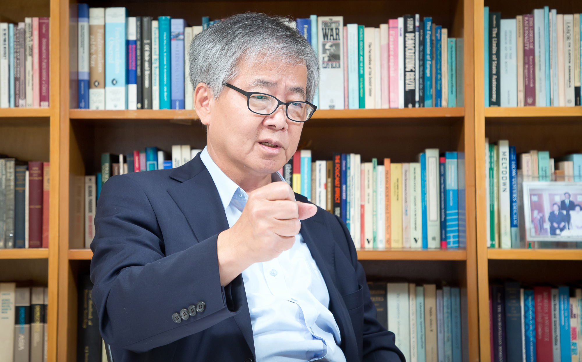[서울=eoimage] 임준선 기자 = 24일 오후 광화문에서 임혁백 고려대 명예 교수가 시사저널과 인터뷰를 하고 있다.