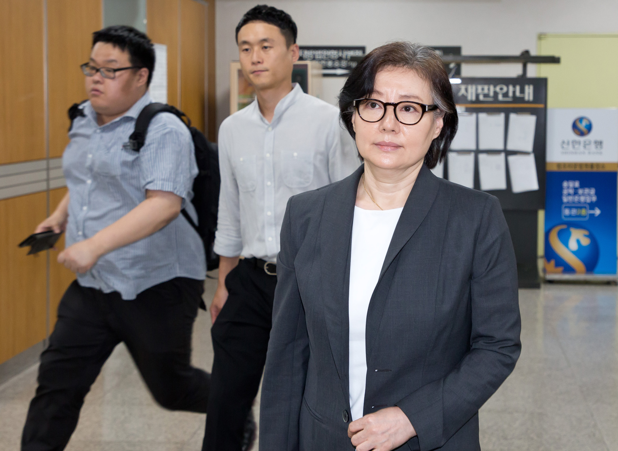 [서울=eoimage] 임준선 기자 = 신격호 롯데그룹 명예회장과 사실혼 관계에 있는 서미경 씨가 25일 오후 서울 서초구 서울고등법원에서 열린 '롯데 오너가 비리' 항소심 공판에 출석하고 있다. (사진 사용시 서미경(검은외투) 외 주변인물은 모자이크 요망.) 2018.07.25 |