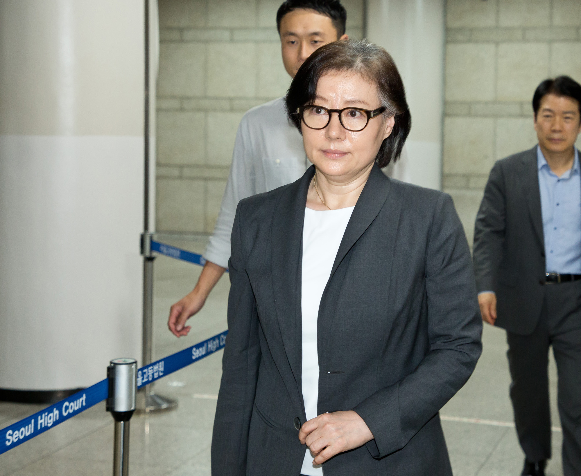 [서울=eoimage] 임준선 기자 = 신격호 롯데그룹 명예회장과 사실혼 관계에 있는 서미경 씨가 25일 오후 서울 서초구 서울고등법원에서 열린 '롯데 오너가 비리' 항소심 공판에 출석하고 있다. (사진 사용시 서미경(검은외투) 외 주변인물은 모자이크 요망.) 2018.07.25 |
