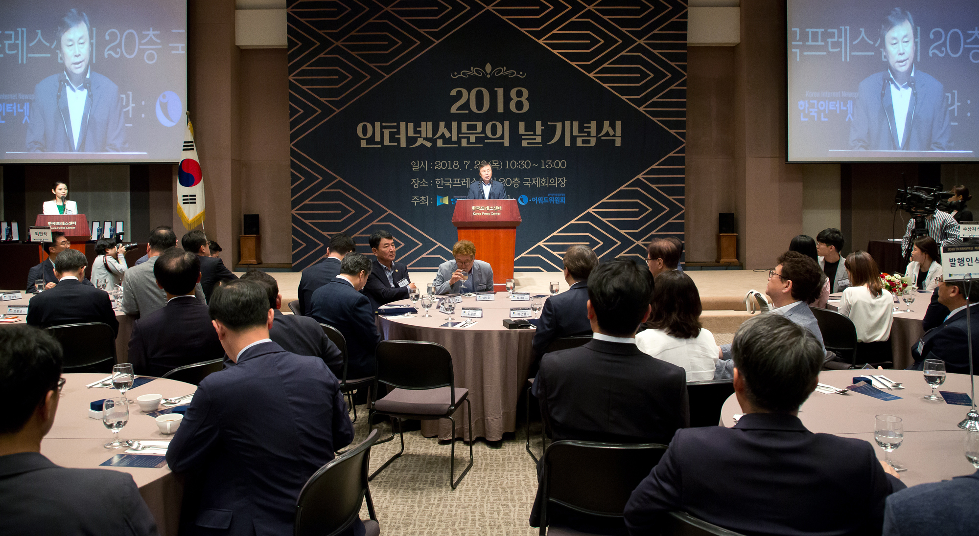 [서울=eoimage] 임준선 기자 = 26일 오전 서울 중구 프레스센터에서 열린 ‘2018 인터넷신문의 날’ 기념식에 도종환 문화체육관광부 장관이 문재인 대통령의 축사를 대독하고 있다. 2018.07.25