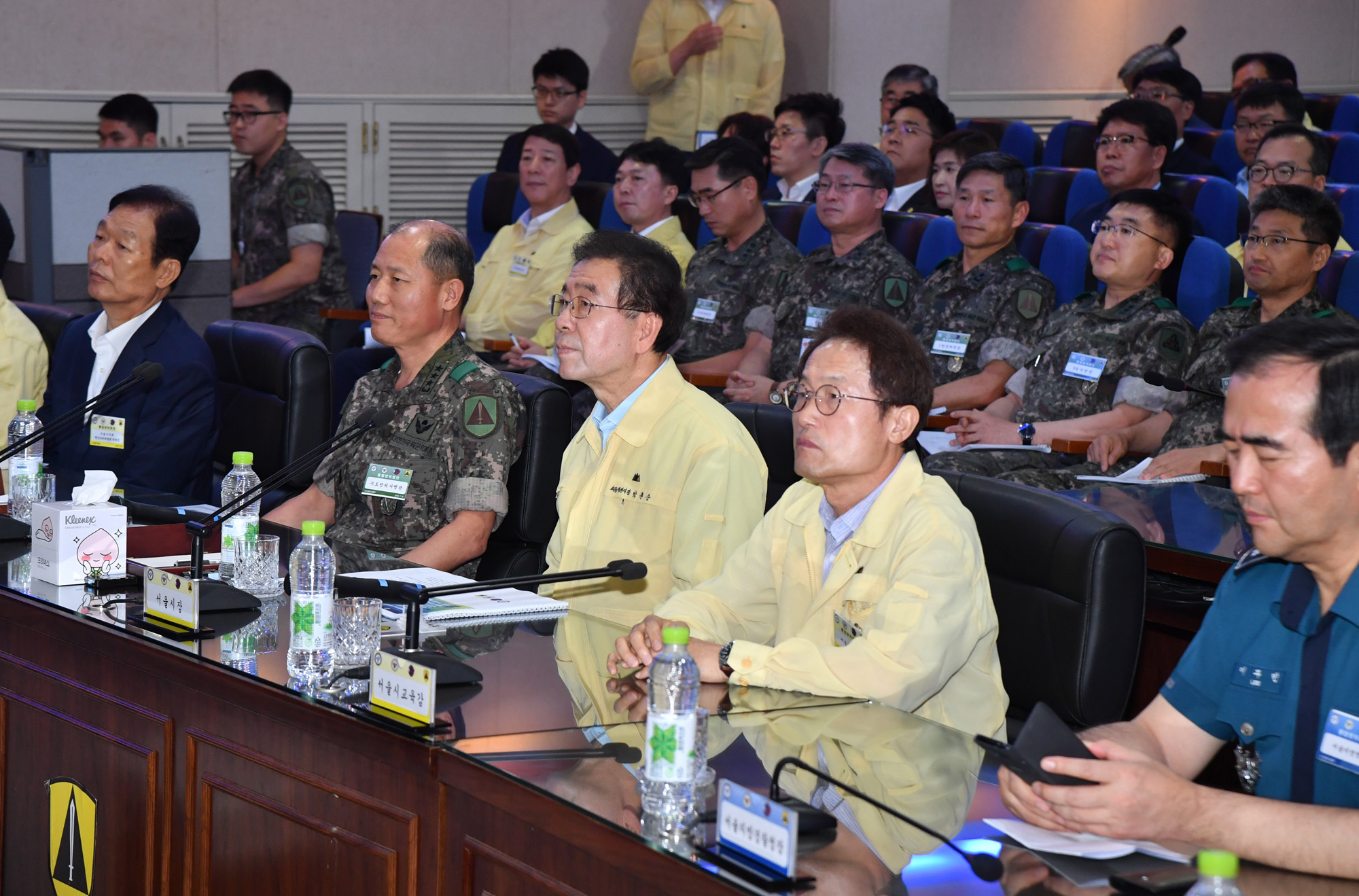 박원순 서울시장이 26일 오전 서울 수도방위사령부에서 열린 '2018년 하반기 서울시 통합방위회의'에서 김정수 수도방위사령관에게 감사패를 전달하고 있다. 서울시 제공