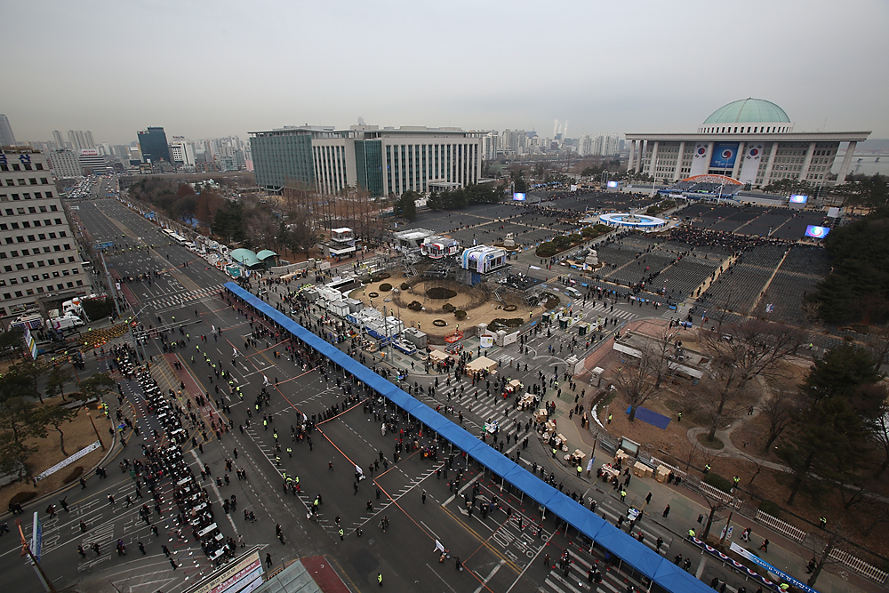 제 18대 대통령 취임식이 열리는 25일 오전 서울 국회의사당 광장에 시민들이 입장하고 있다. 13.02.25. 시사저널 최준필