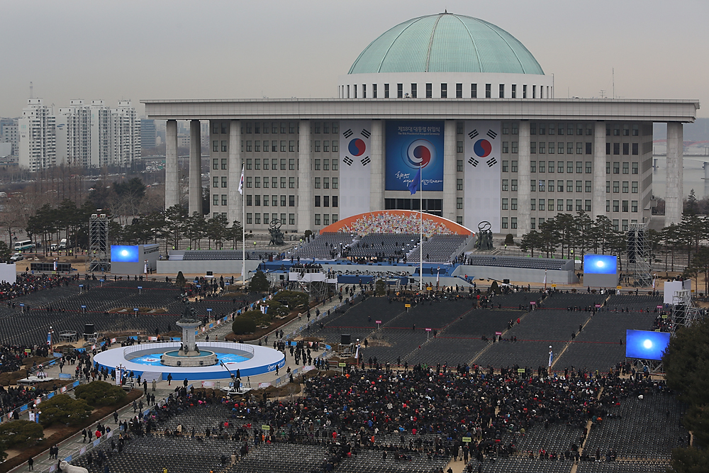 제 18대 대통령 취임식이 열리는 25일 오전 서울 국회의사당 광장에 시민들이 입장하고 있다. 13.02.25. 시사저널 최준필