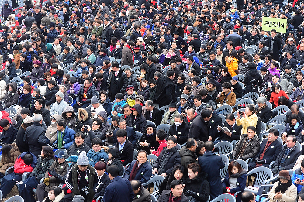 제18대 대통령 취임식이 열리는 25일 오전 서울 여의도 국회의사당 앞 취임식장을 찾은 시민들이 취임식이 시작하기를 기다리고 있다. 노진환 기자 myfixer@
