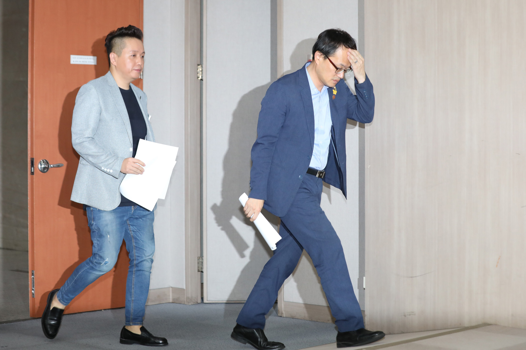 | 사진설명 | [eoimage=서울] 박은숙 기자 = 박주민 더불어민주당 의원과 임태훈 군인권센터 소장이 31일 오후 국회 정론관에서 김성태 자유한국당 원내대표의 발언과 관련 기자회견을 하고 있다. 이 날 오전 김 원내대표는 임 소장의 성 정체성 문제를 거론하며 군인권센터를 비난하는 발언을 했다. 2018. 7. 31.eomaster@eoimage.com |