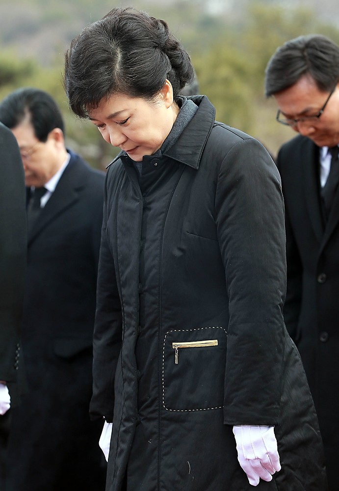 취임식을 앞두고 있는 박근혜 대통령이 정부대표를 비롯해 국가유공자 및 현충원 안장 유가족 등과 함께 25일 오전 서울 동작구 국립현충원을 찾아 참배하고 있다.