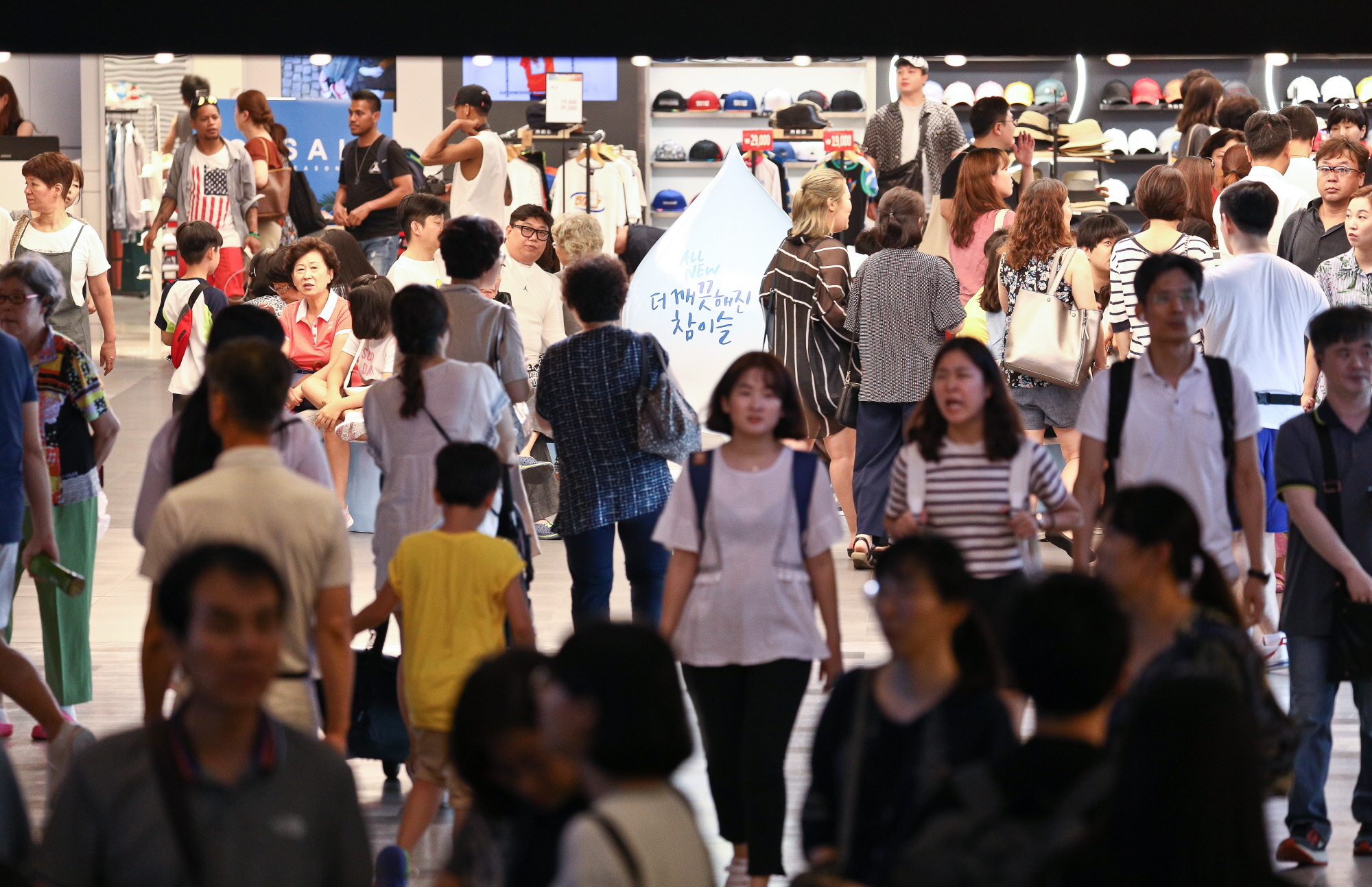 [서울=eoimage] 고성준 기자 = 서울 낮 최고기온 39.6도를 기록한 1일 오후 서울 용산구에 위치한 쇼핑몰을 찾은 시민들이 즐거운 시간을 보내고 있다. 2018.8.1
