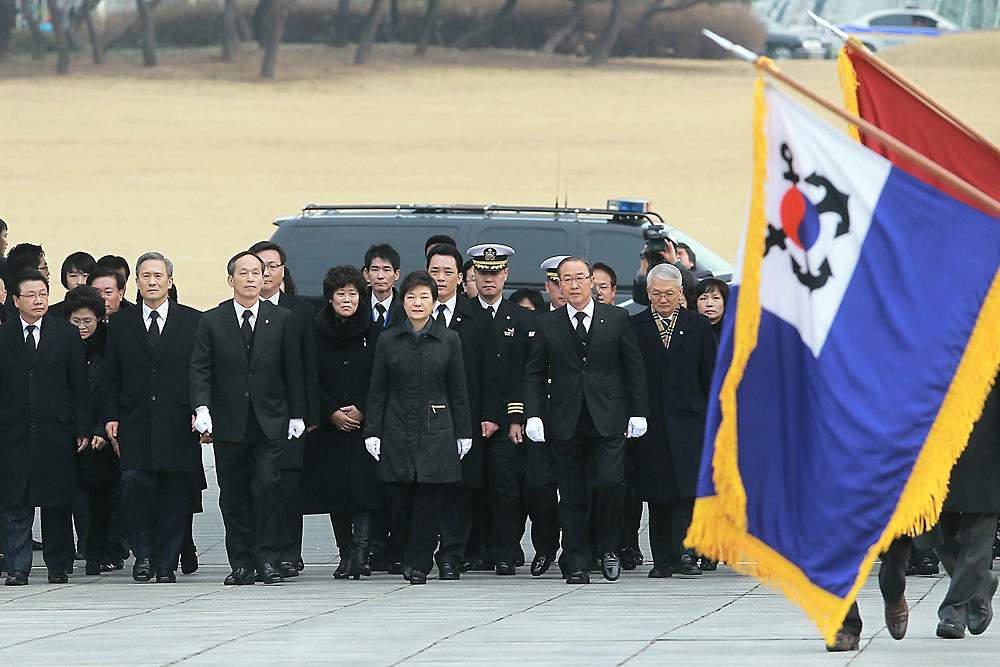 취임식을 앞두고 있는 박근혜 대통령이 정부대표를 비롯해 국가유공자 및 현충원 안장 유가족 등과 함께 25일 오전 서울 동작구 국립현충원을 찾아 참배하고 있다.