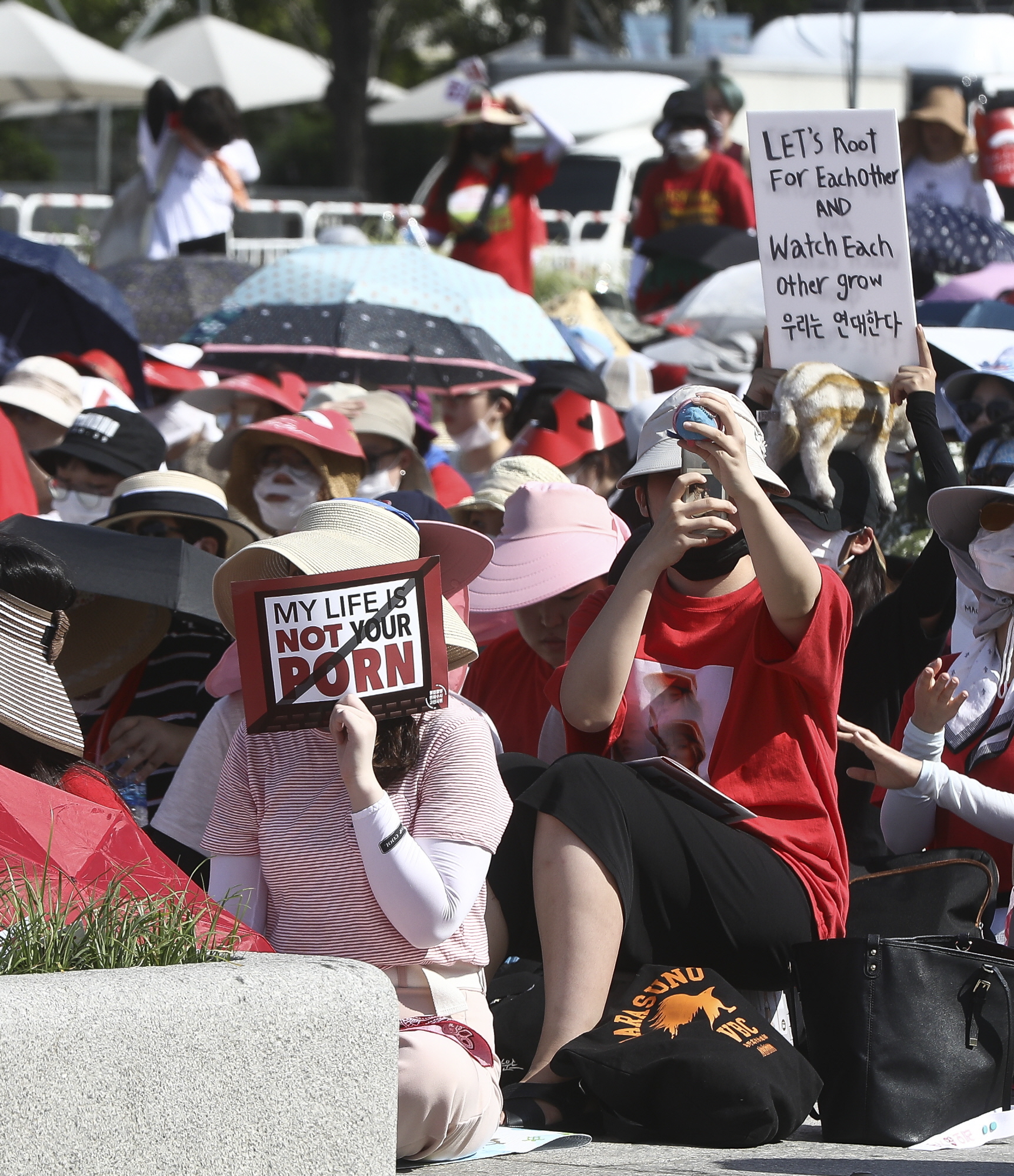 [서울=eoimage] 고성준 기자 = 4일 오후 서울 광화문광장에서 제4차 몰래카메라 편파수사 규탄 시위가 열리고 있다. 2018.8.4