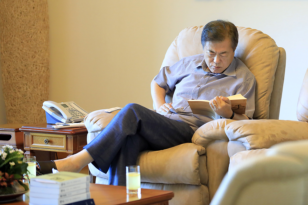 문재인 대통령이 1일 휴가를 맞아 찾은 계룡대에서 책을 읽고 있다. 2018.8.1