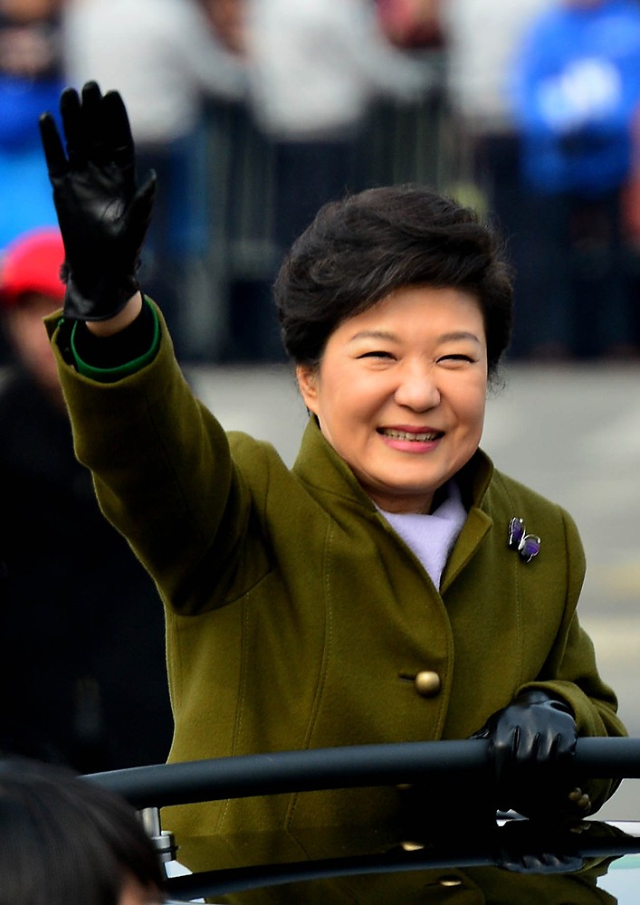 박근혜 제18대 대통령이 25일 서울 여의도 국회의사당에서 취임식을 마친 후 시민들을 향해 손을 흔들고 있다. 양지웅 기자 yangdoo@
