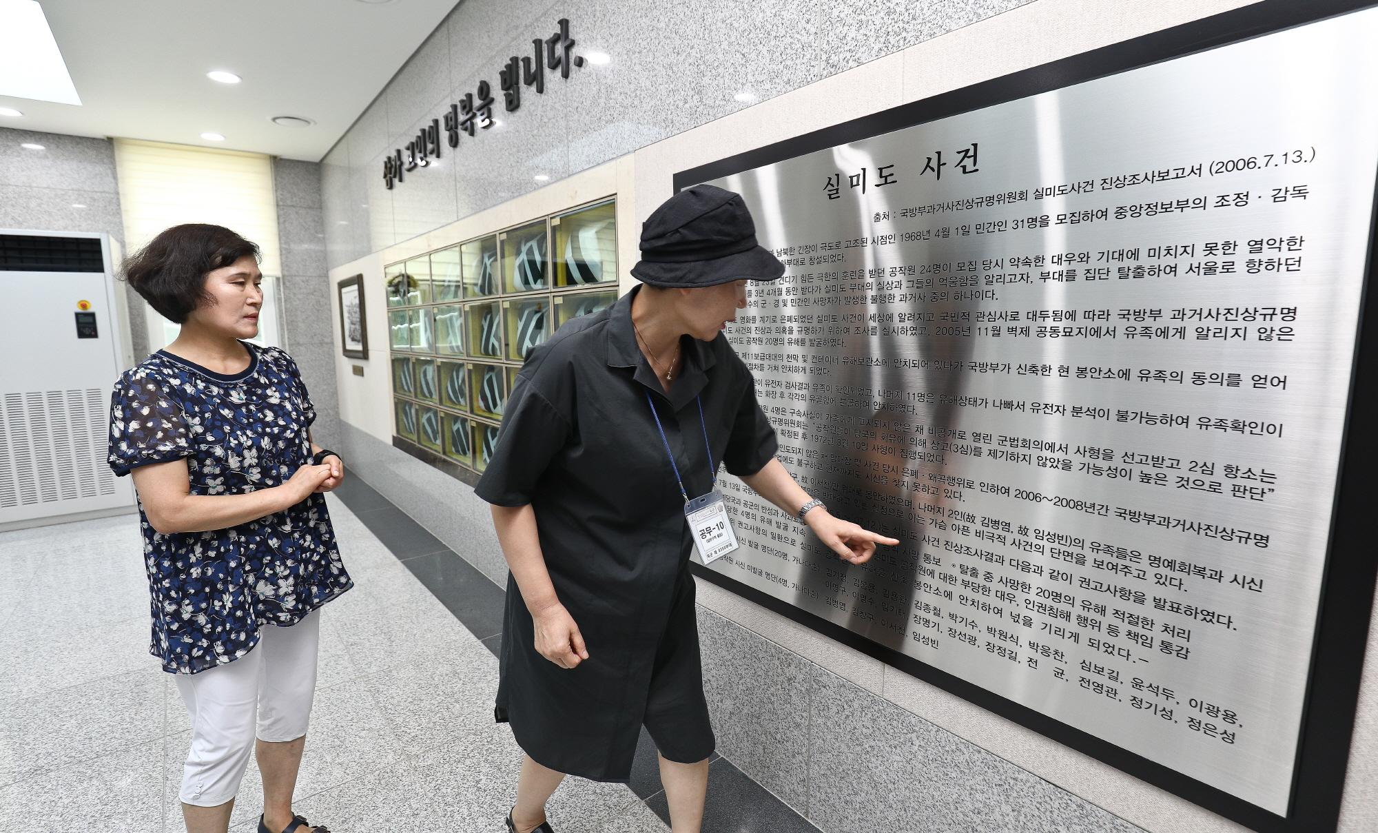 [고양=eoimage] 시사저널 고성준 기자 = 13일 오후 경기도 고양시 벽제역 인근 실미도 희생자 봉안당을 찾은 유족들이 취재진에게 억울함을 토로하고 있다. 2018.8.13