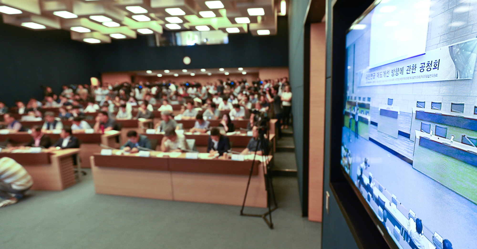 [서울=eoimage] 고성준 기자 = 17일 서울 중구 대한상공회의소에서 '국민연금 재도개선 방향에 관한 공청회'가 열리고 있다. 2018.8.17