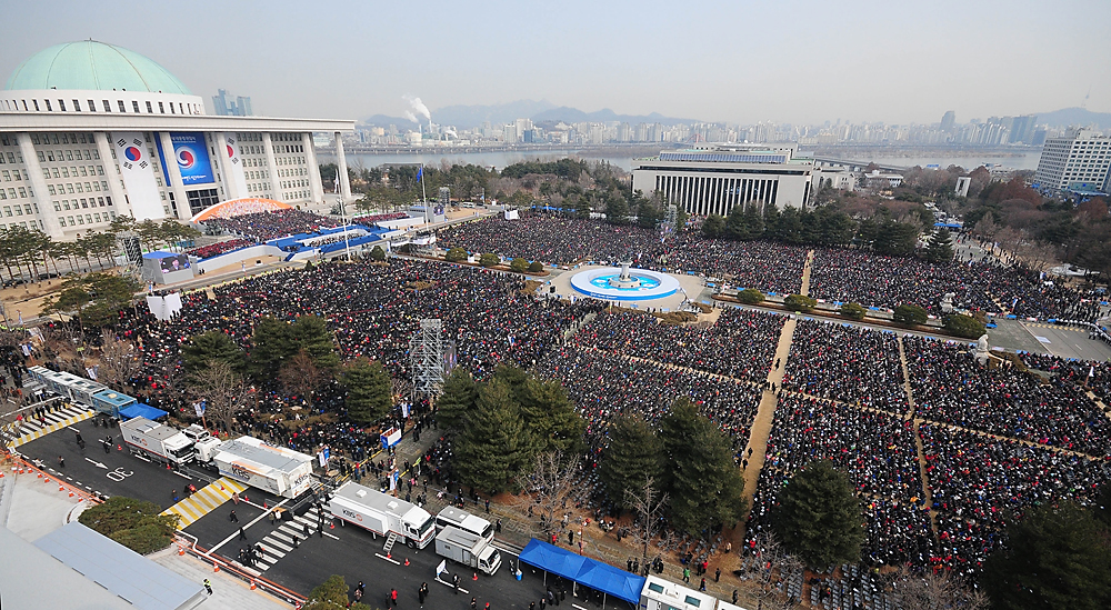 18대 박근혜 대통령 취임식이 25일 서울 여의도 국회에서 열린 가운데 많은 시민들이 자리하고 있다.