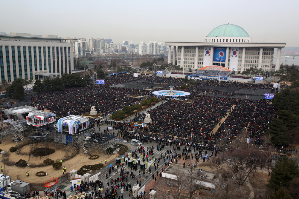 제 18대 대통령 취임식이 열리는 25일 오전 서울 국회의사당 광장에 많은 시민들이 입장해 있다. 13.02.25. 시사저널 최준필