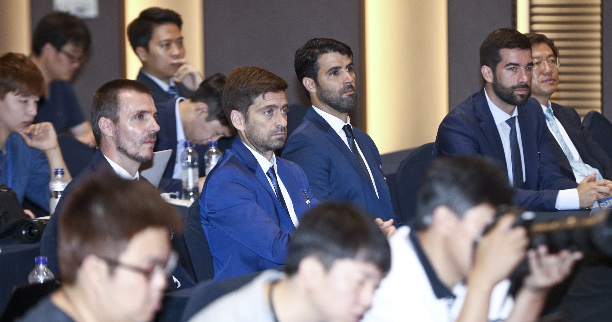 [서울=eoimage] 고성준 기자 = 파울루 벤투 신임 축구대표팀 감독의 취임기자회견이 열린 23일 오전 경기도 고양시 MVL호텔에서 코칭스텝들이 벤투 감독의 발언을 듣고있다. 2018.8.23