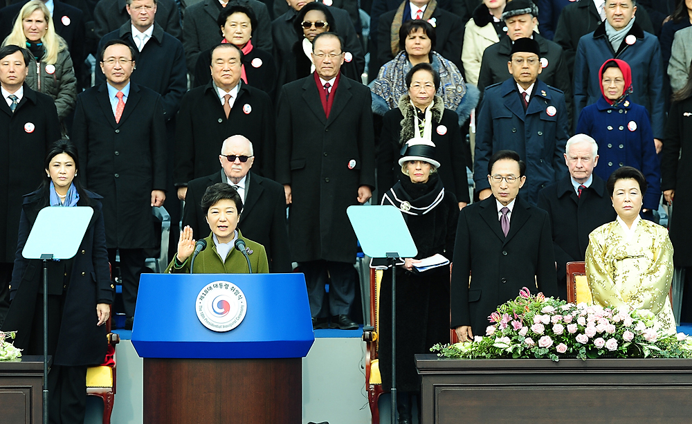 박근혜 대통령이 25일 오전 국회에서 열린 제18대 대통령 취임식에서 선서를 하고 있다./이병화 기자photolbh@