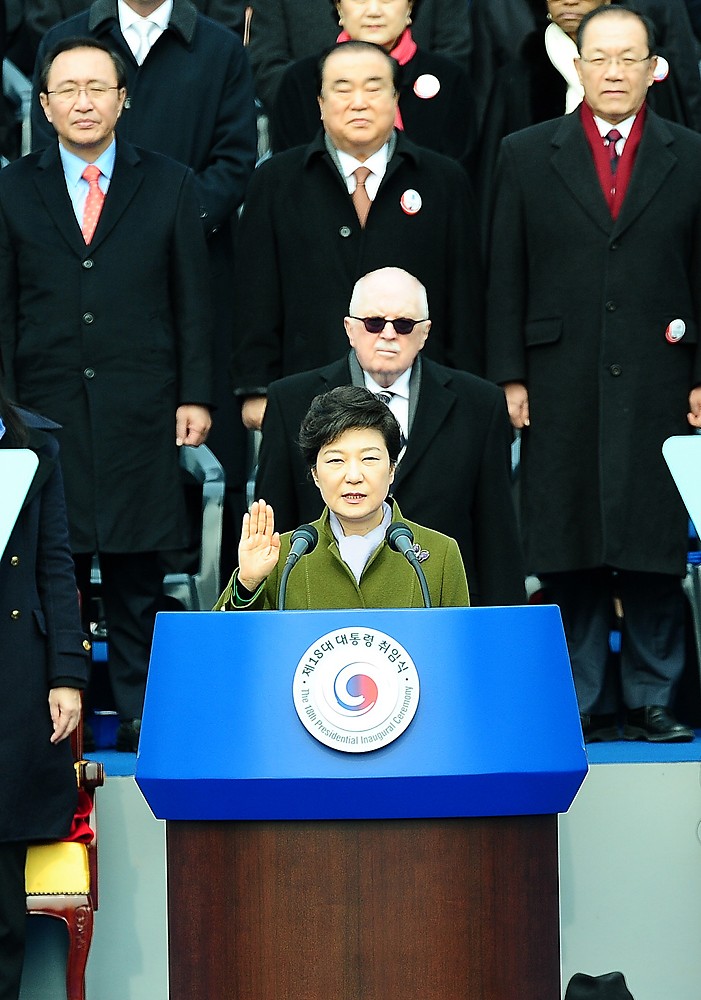 박근혜 대통령이 25일 오전 국회에서 열린 제18대 대통령 취임식에서 선서를 하고 있다./이병화 기자photolbh@