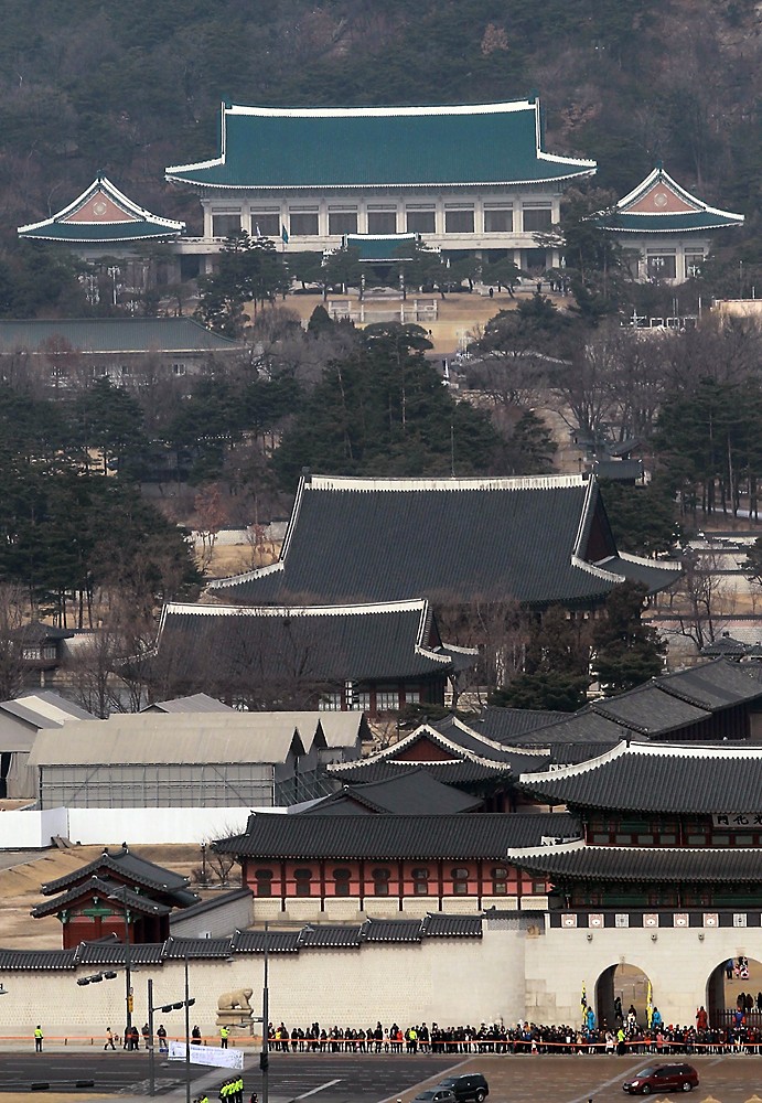 18대 박근혜 대통령이 취임한 25일 오후 서울 경복궁 뒤로 새 주인을 맞이할 청와대의 모습이 보이고 있다.
