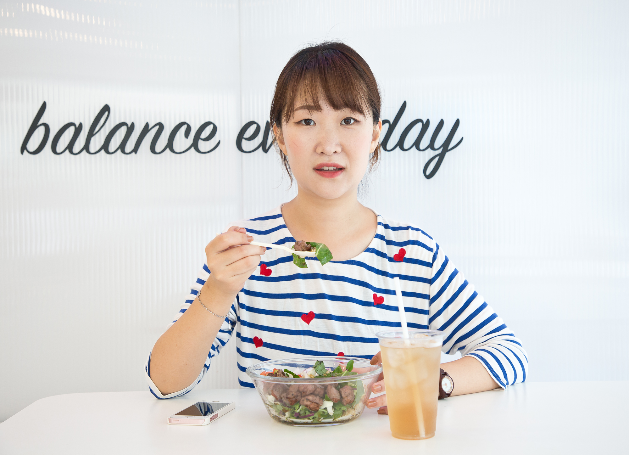 [서울=eoimage] (시사저널) 임준선기자 = 13일 오전 용산에서 기자가 직접 샐러드 식단 다이어트 체험을 하고 있다. 2018.09.13
