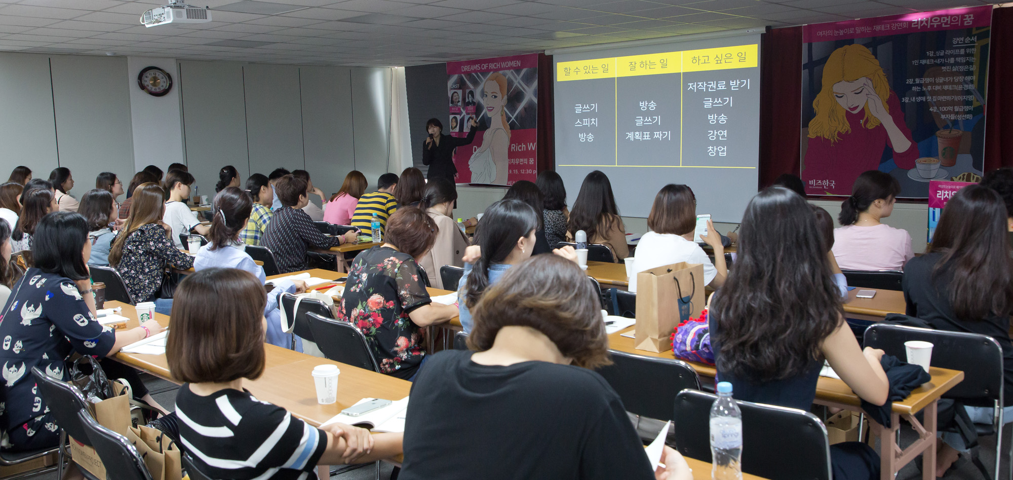 [서울=eoimage] (비즈한국) 임준선기자 = 15일 오전 한화센터 공간드림에서 비즈한국이 주최하는 '리치우먼의 꿈' 강연회가 열리고 있다. 사진은 정은길 첫눈스피치 대표가 싱글라이프를 위한 1인 재테크- 내가 나를 책임지는 멋진 삶 에 대해 강연을 하고 있다.2018.09.15 |