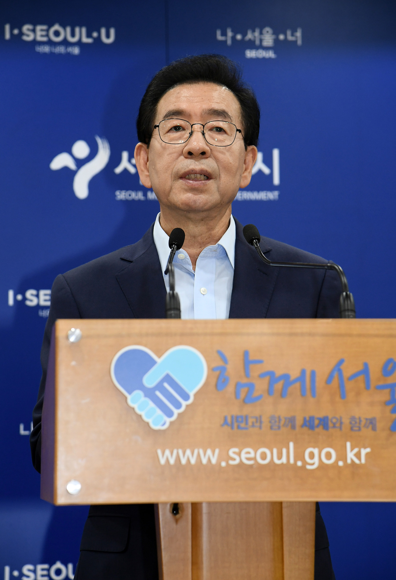 26일 오후 서울시청에서 박원순 시장이 여의도, 용산 마스터플랜을 보류한다는 기자회견을 하고 있다. 서울시 제공