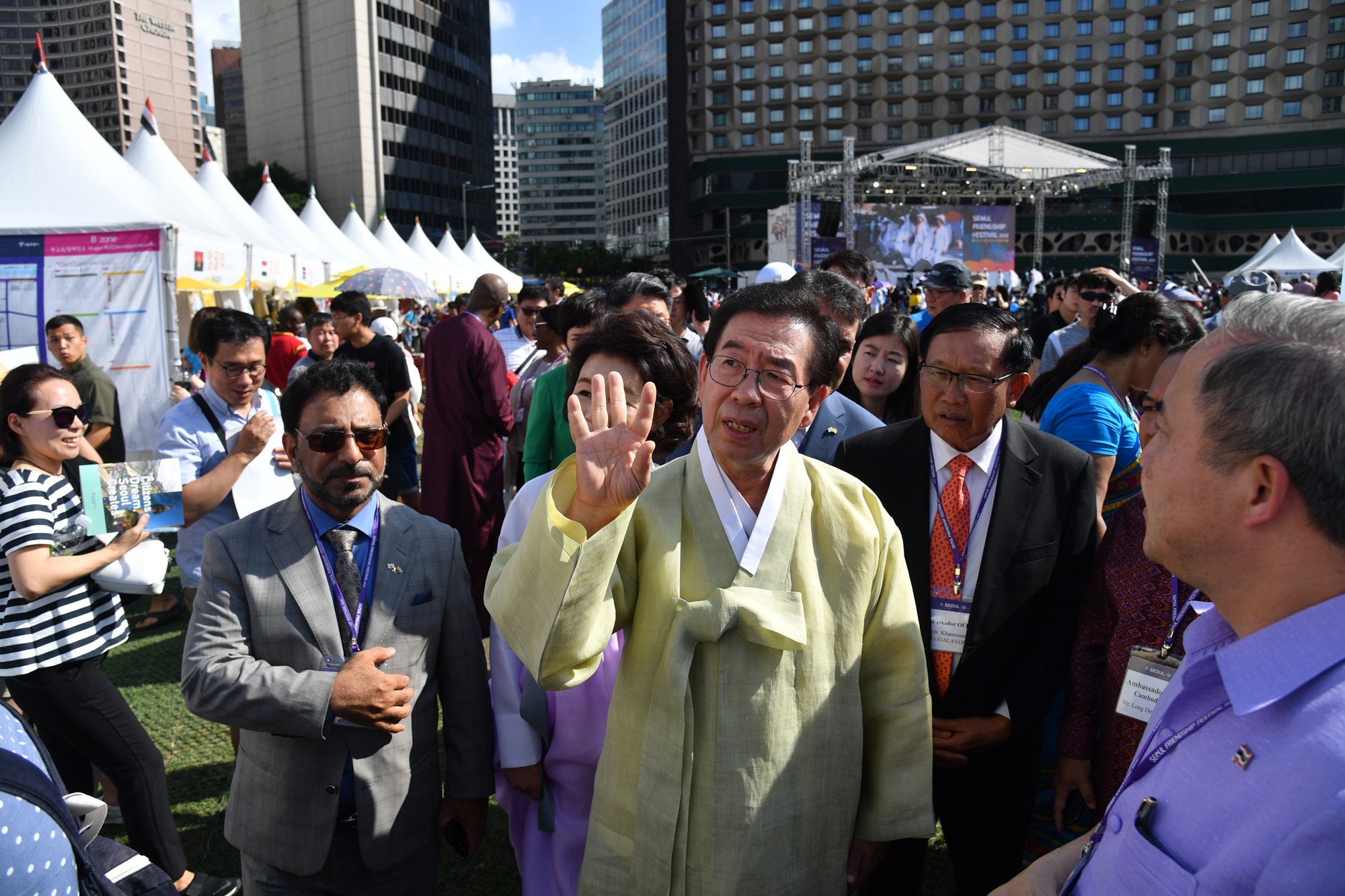 박원순 서울시장이 1일 오후 서울 중구 서울광장에서 열린 '2018 서울 세계도시 문화축제' 개막식에 참석하고 있다. 서울시 제공