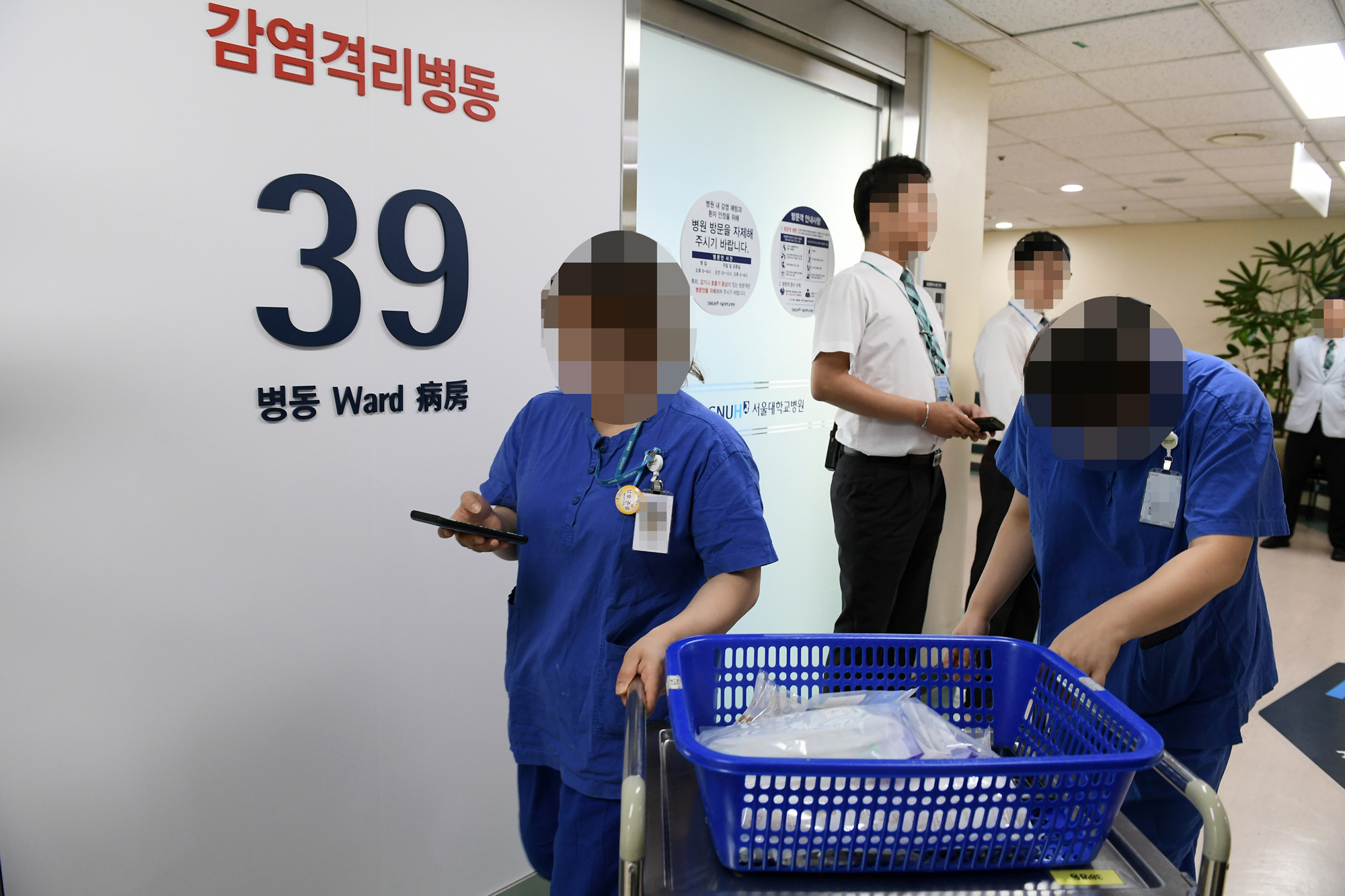 박원순 서울시장이 9일 메르스 환자가 격리치료를 받고 있는 서울대병원을 둘러보고 있다. 서울시 제공