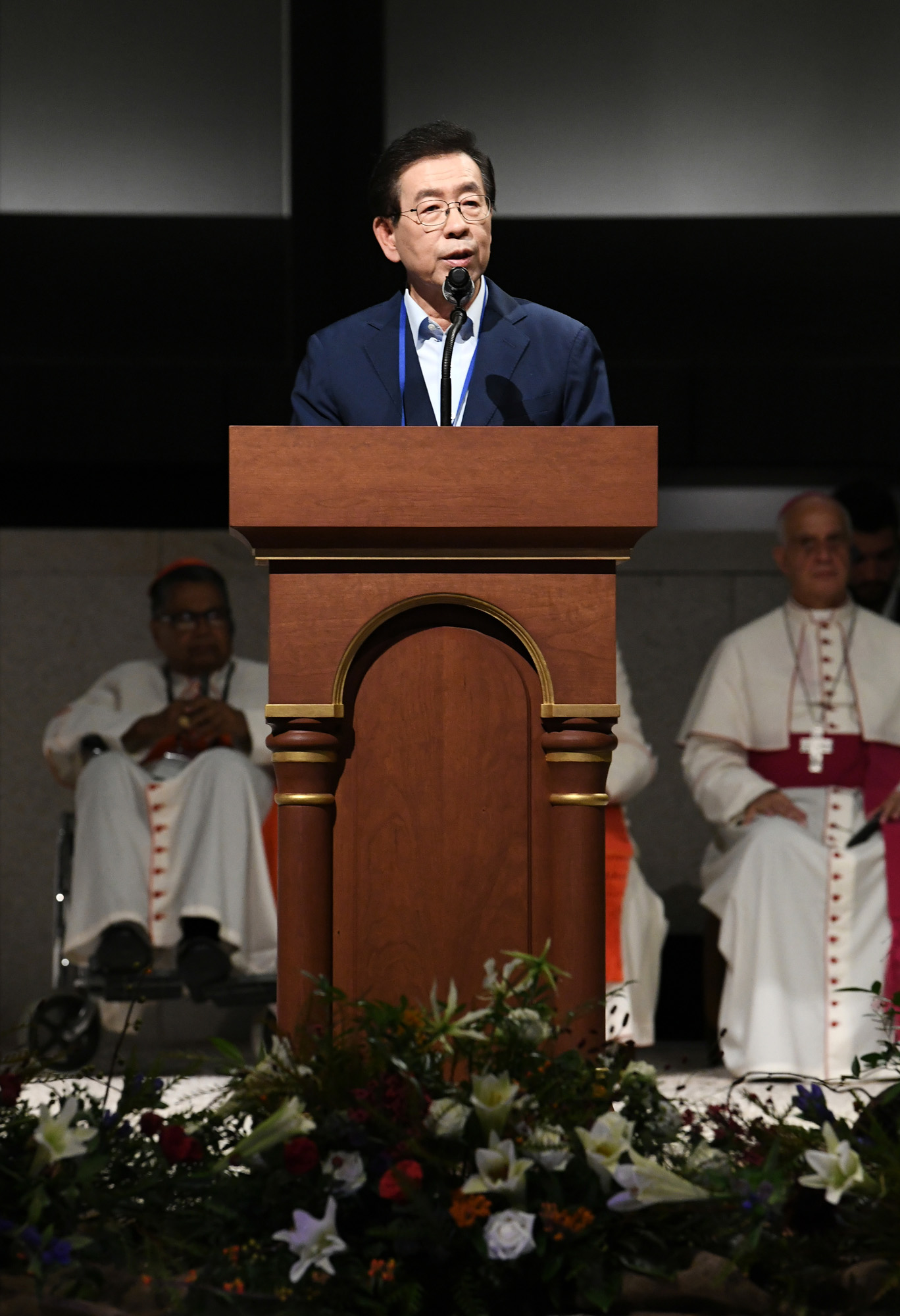 박원순 서울시장이 14일 오전 서울 중구 서소문역사공원에서 열린 ‘천주교 서울 순례길’ 국제순례지 선포식에서 축사를 하고 있다. 서울시 제공