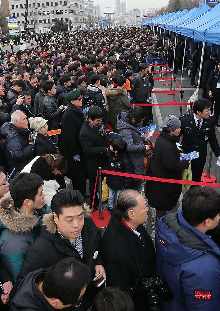 25일 서울 여의도 국회의사당 광장에서 열린 제18대 대통령 취임식에 참석하려는 시민들로 식장 출입구가 붐비고 있다. 2013.2.25/뉴스1