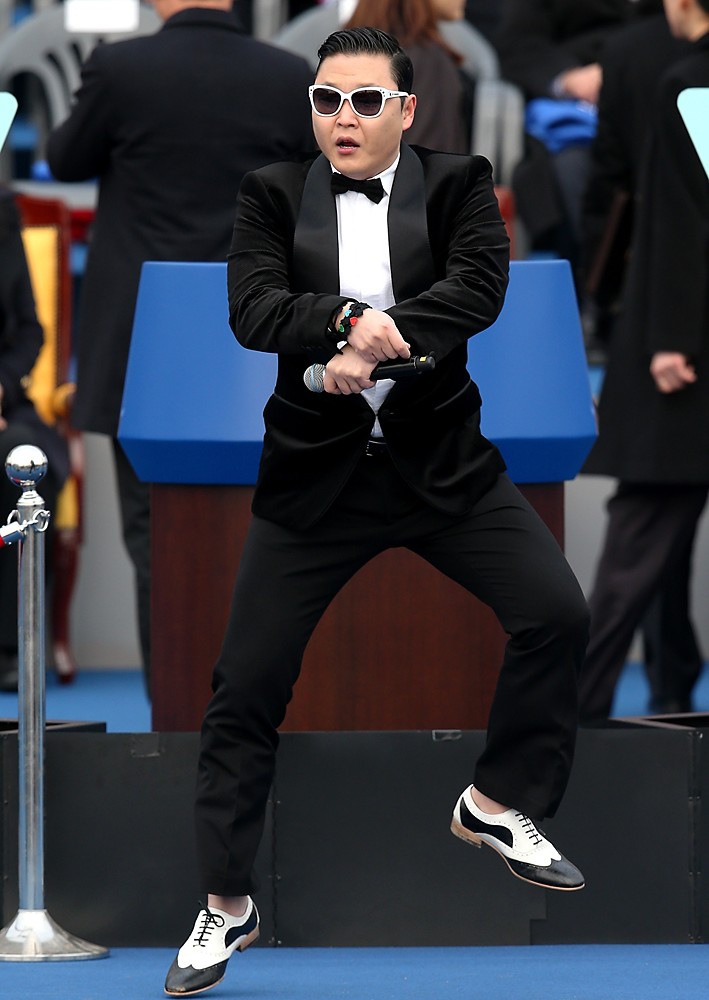 가수 싸이가 25일 서울 영등포구 여의도동 국회의사당에서 열린 18대 대통령 취임식에서 축하공연을 펼치고 있다. 2013.2.25/뉴스1