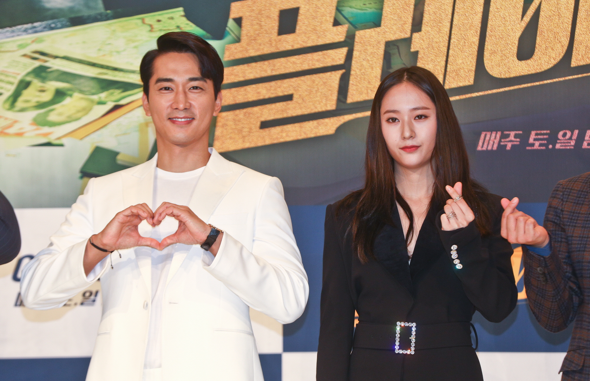 [서울=eoimage] 고성준 기자 = 20일 오후 서울 영등포구 타임스퀘어에서 OCN 새 드라마 '플레이어' 제작발표회가 열리고 있다. 사진은 배우 송승헌과 정수정이 참석한 모습. 2018.9.20