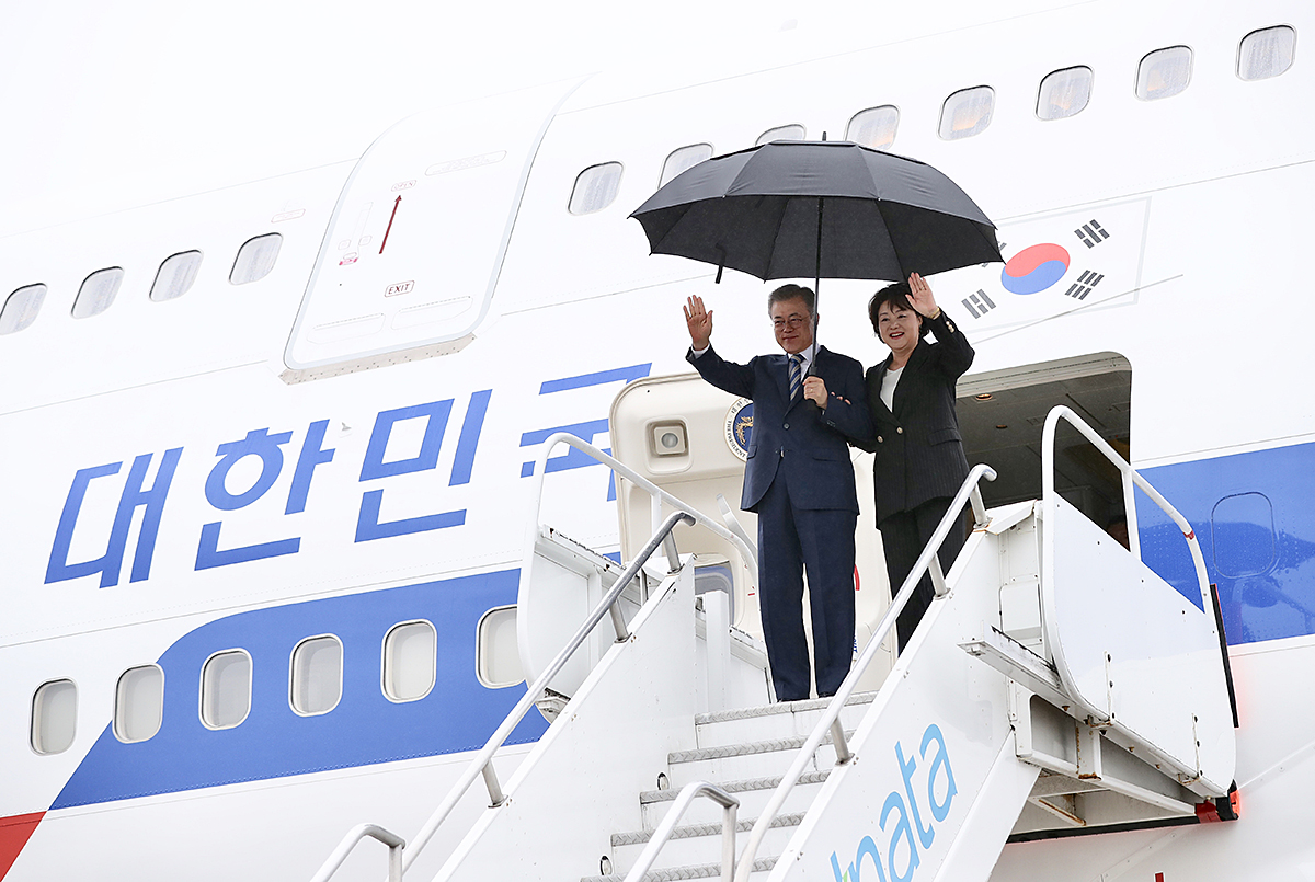 문재인 대통령과 부인 김정숙 여사가 제73차 유엔총회 참석차 23일(현지시간) 오후 미국 뉴욕 JFK 국제공항에 도착하고 있다.