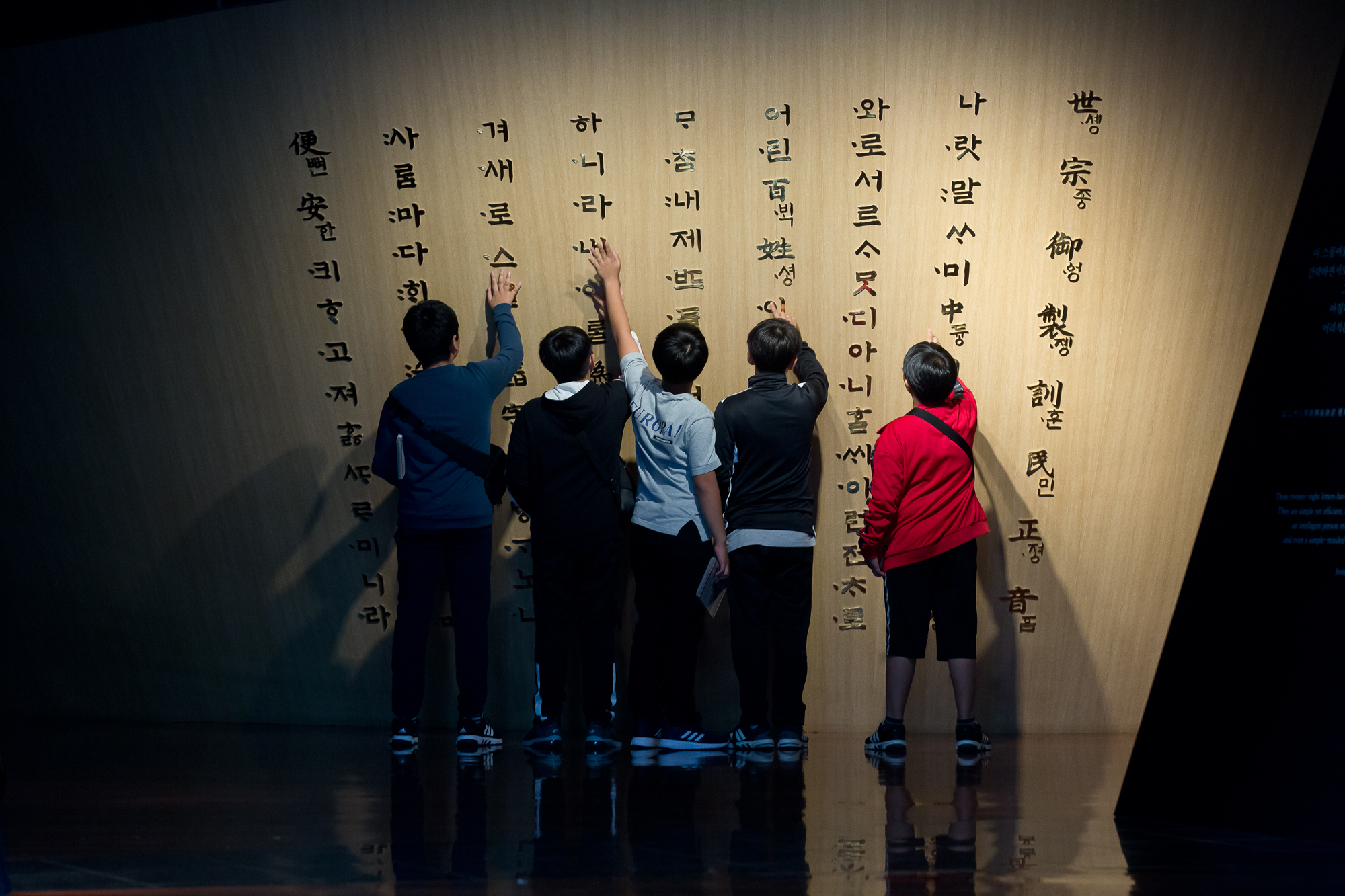 [서울=eoimage] (시사저널) 임준선기자 = 1일 오후 서울 용산구 서빙고로 139에 위치한 국립한글박물관에 전시된 훈민정음 전시물을 학생들이 둘러 보고 있다. 2018.10.01. eomaster@eoimage.com