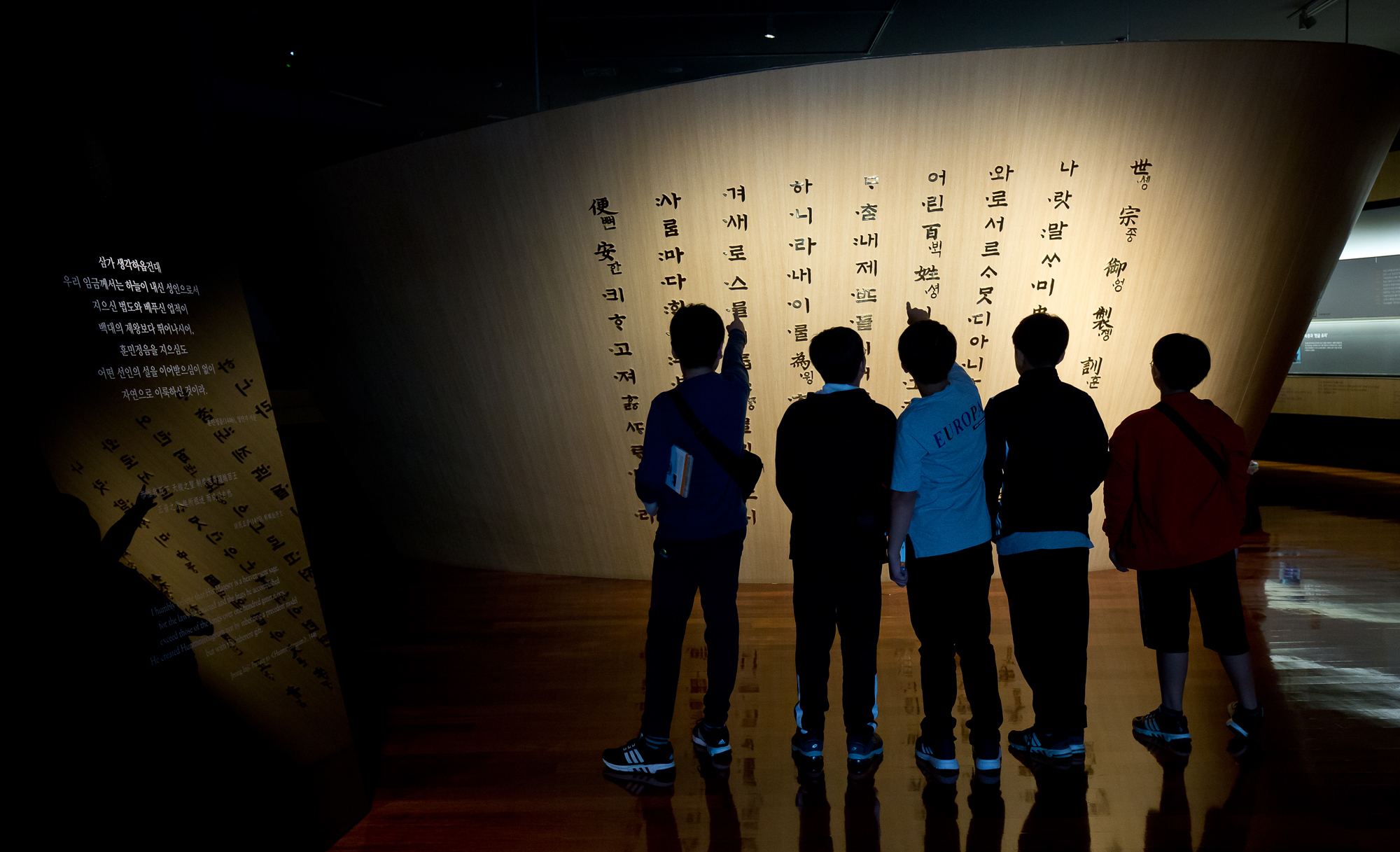 [서울=eoimage] (시사저널) 임준선기자 = 1일 오후 서울 용산구 서빙고로 139에 위치한 국립한글박물관에 전시된 훈민정음 전시물을 학생들이 둘러 보고 있다. 2018.10.01. eomaster@eoimage.com