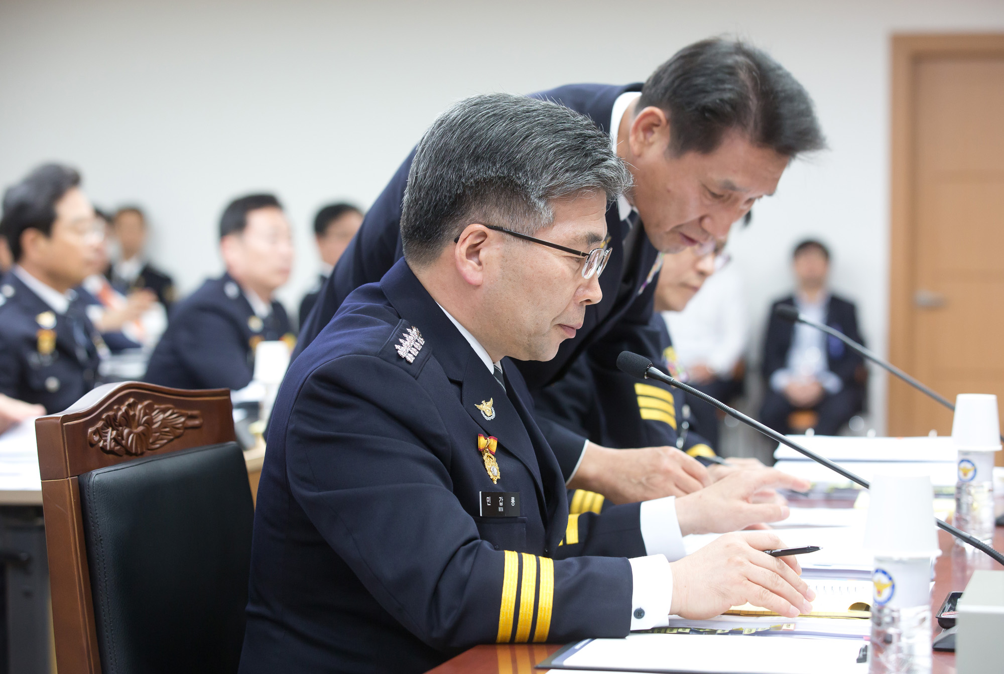 [서울=eoimage] (이오이미지) 임준선 기자= 11일 서울 서대문구 경찰청에서 국회 행정안전위원회 경찰청 국정감사가 열리고 있다. 사진은 민갑룡 경찰청장이 의원들의 질의에 답하고 있다.