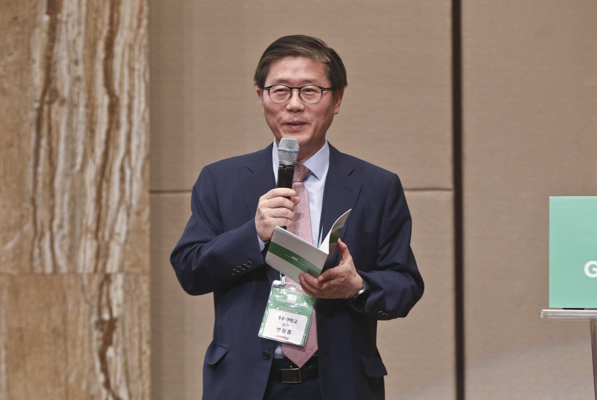 [서울=eoimage] 시사저널 고성준 기자 = 23일 오후 서울 중구 밀레니엄 서울힐튼에서 열린 '굿시티포럼2018'에 참석한 변창흠 세종대 교수가 발언하고 있다. 2018.10.23