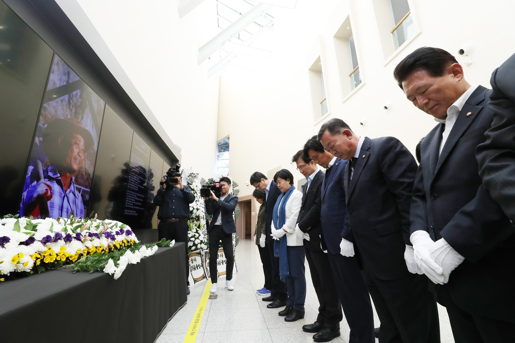 독도의 날(10월 25일)을 앞둔 22일 국회 교육위원회 소속 의원들이 국정감사 현장시찰 차원에서 독도를 방문해 둘러보고 헌화하고 있다. 이찬열 교육위원장은 "계속된 일본의 역사교과서 왜곡을 규탄하고, 올바른 역사인식을 고취하기 위해 독도 방문을 계획했다"고 설명했다.