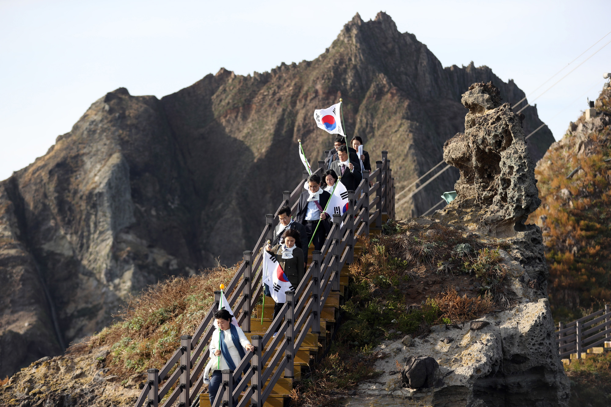 기념촬영 - 들고 "독도는 대한민국이다" 등을 외치고 있다. 이찬열 교육위원장은 "계속된 일본의 역사교과서 왜곡을 규탄하고, 올바른 역사인식을 고취하기 위해 독도 방문을 계획했다"고 설명했다.