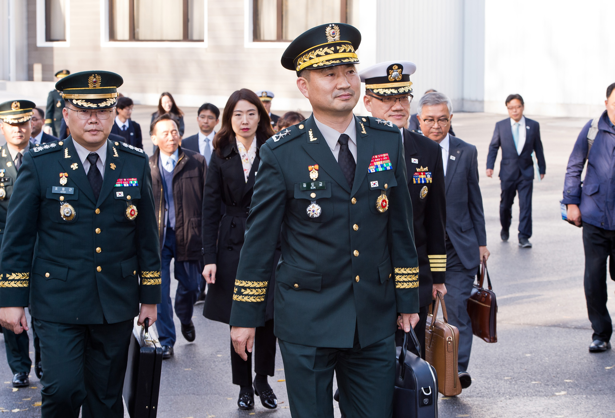 남측 군사회담 대표단이 26일 오후 판문점 북쪽 통일각에서 열린 제10차 남북장성급 군사회담을 마치고 도보로 남측으로 내려오고 있다. 2018.10.26. 사진공동취재단 일요신문 최준필 기자