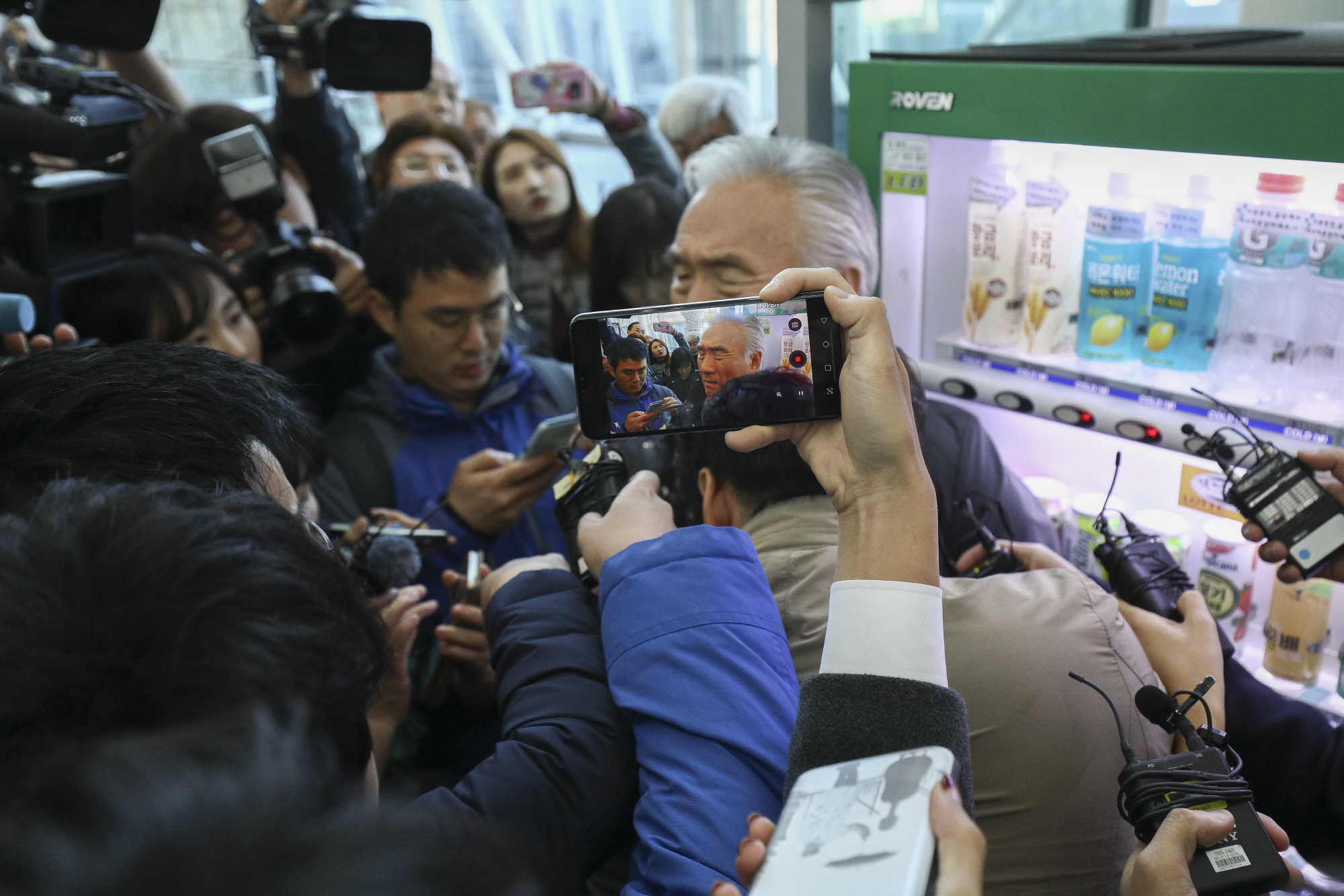 [고양=eoimage] 고성준 기자 = 30일 오후 경기 고양시 일산 서구 킨텍스 제2전시장에서 열린 사립유치원 공공성 강화를 위한 비공개 대토론회장 앞에서 유치원 종사자가 기자들에게 고충을 토로하고 있다. 2018.10.30