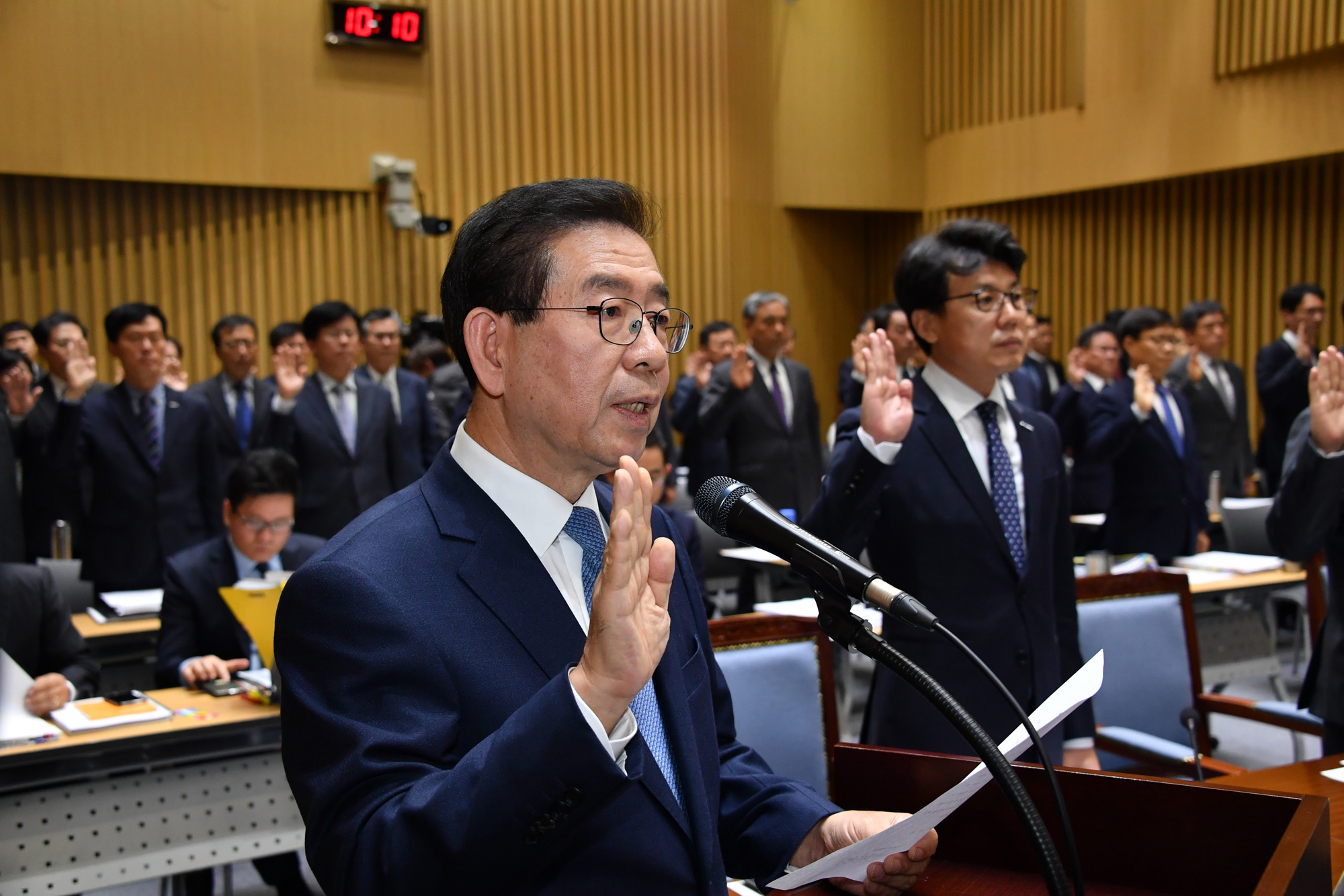 박원순 서울시장이 18일 오전 서울 중구 서울시청에서 열린 국회 행정안전위원회의 서울시청에 대한 국정감사에 참석하고 있다. 서울시 제공