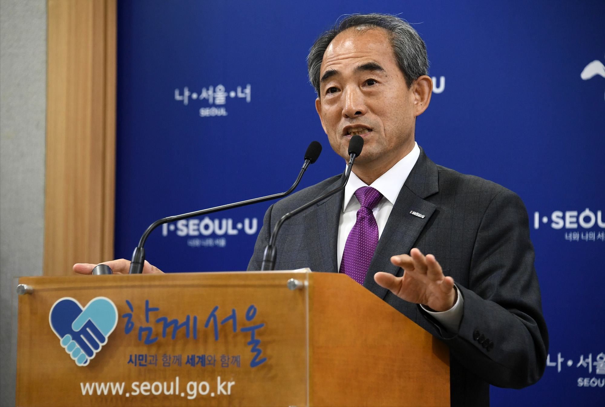 윤준병 서울시 행정1부시장이 24일 오전 서울시청 브리핑룸에서 서울교통공사의 채용비리 의혹과 관련한 서울시의 입장을 밝히고 있다. 서울시 제공