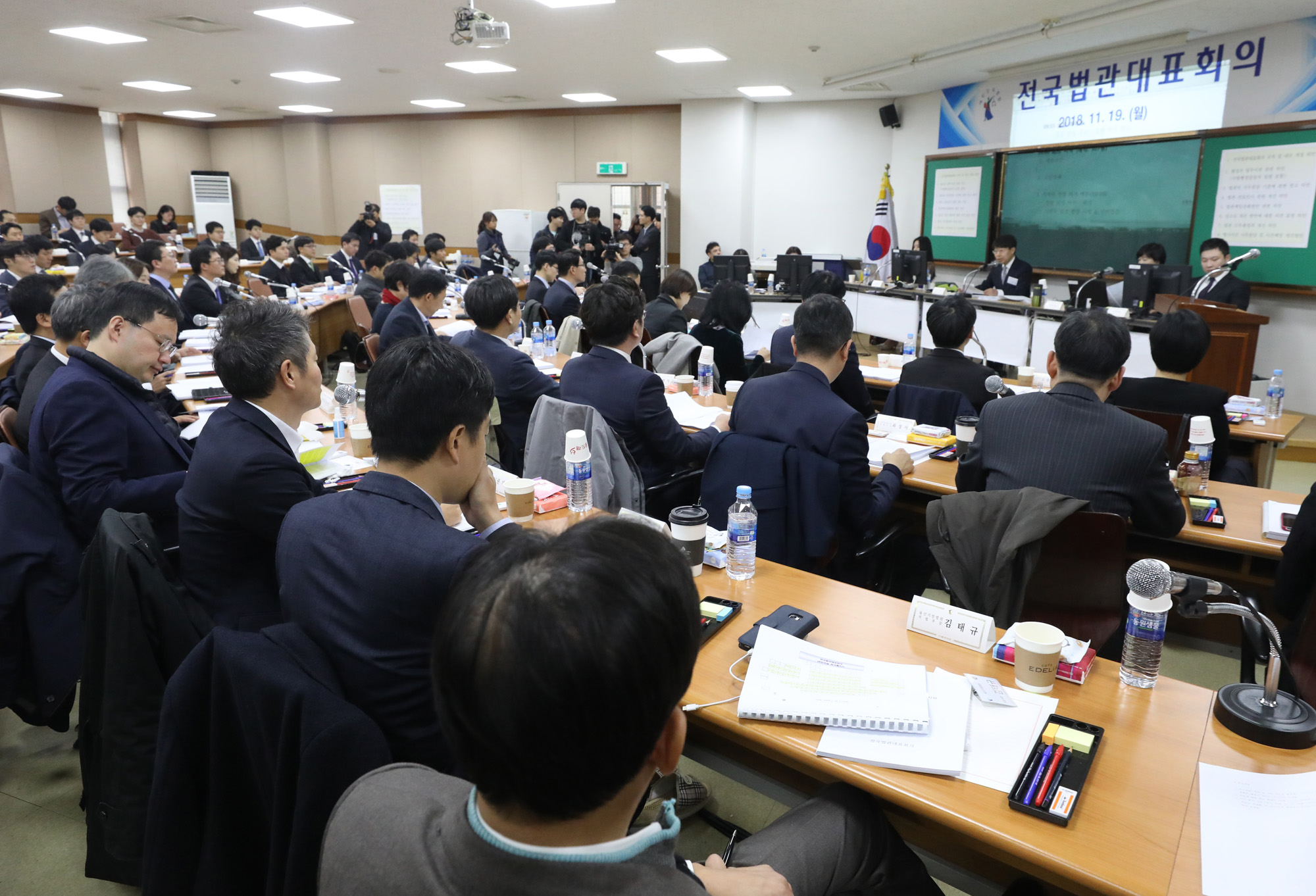 19일 경기 고양시 사법연수원에서 제2차 전국법관대표회의가 열리고 있다. 이날 전국의 법관 대표들은 사법농단 연루 의혹을 받는 법관에 대한 탄핵 필요성을 논의할 전망이다. 2018.11.19 사진/임준선기자(현장풀)