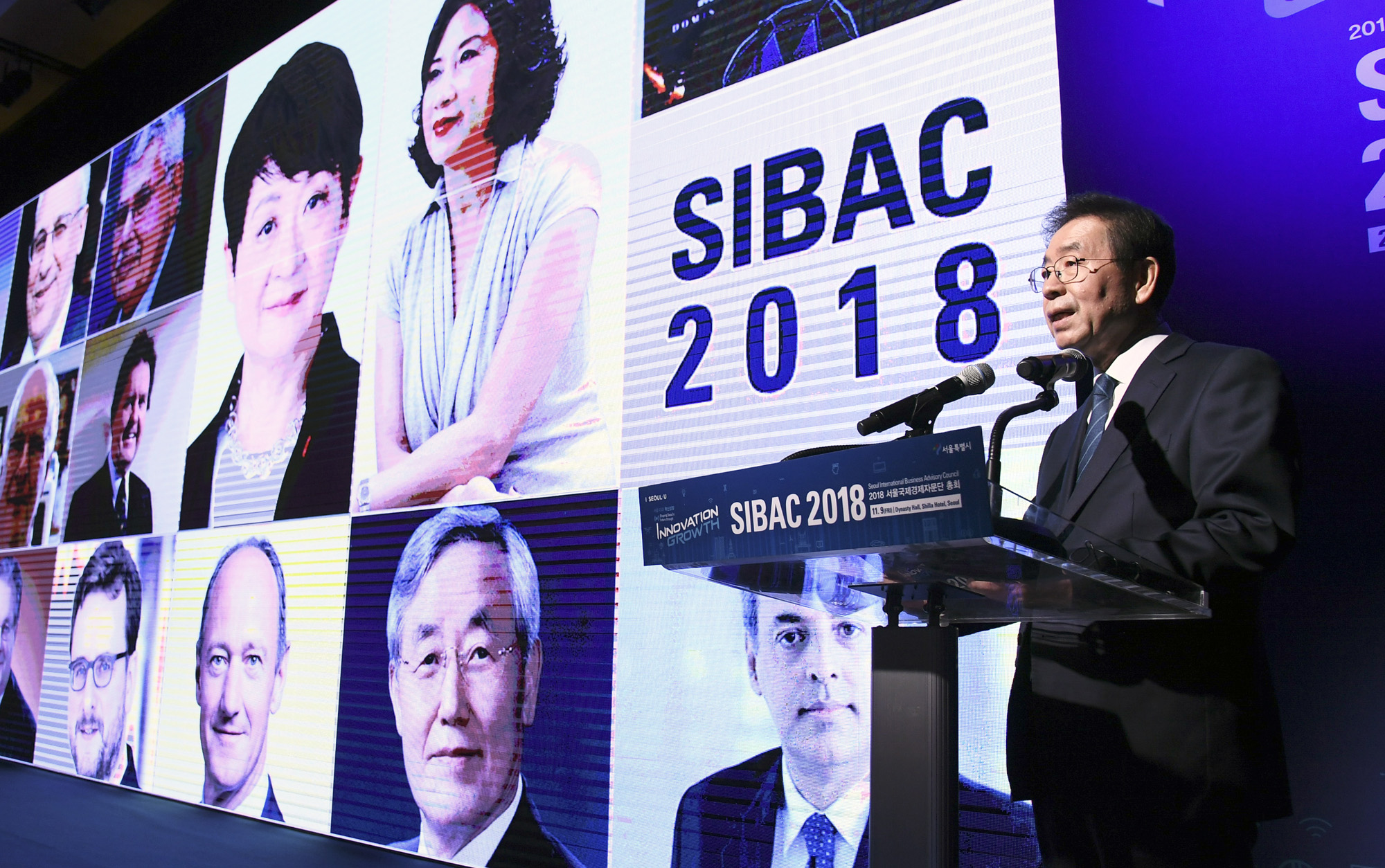 9일 오전 서울 중구 신라호텔에서 열린 서울국제경제자문단 총회(SIBAC)에서 참석자들이 박원순 서울시장의 기조발표를 듣고 있다. 서울시 제공