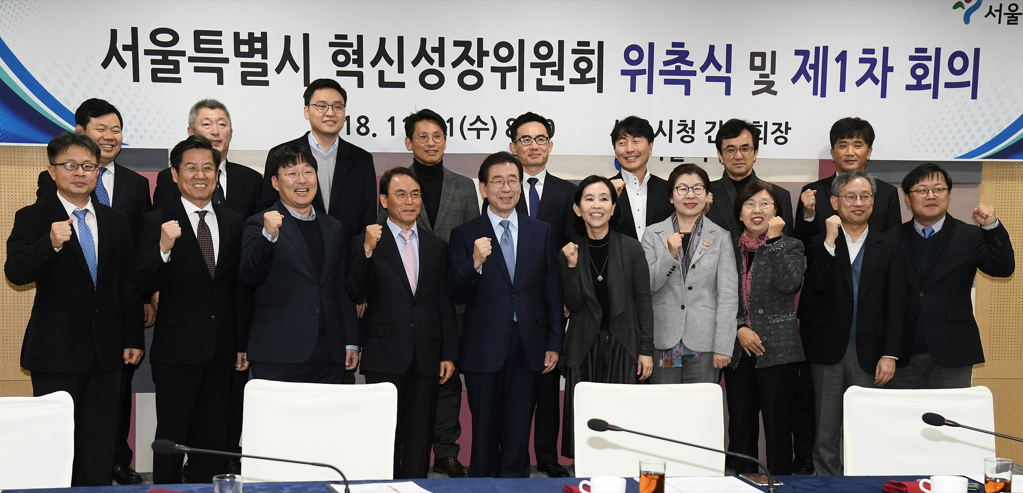 박원순 서울시장이 21일 오전 서울 중구 서울시청에서 열린 '서울시 혁신성장위원회 위촉식 및 1차회의'에 참석해 인사말을 하고 있다. 서울시 제공