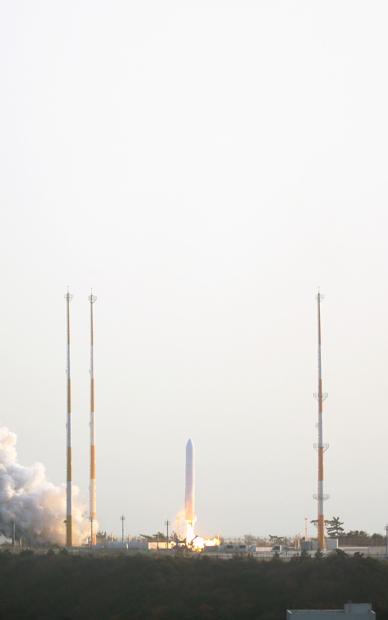 순수 국내기술로 개발된 한국형발사체(KSLV-2) ‘누리호’의 시험발사체가 27일 오후 전라남도 고흥 나로우주센터 발사대에서 우주를 향해 발사되고 있다. 2018/11/28 뉴스웨이 이수길 (NEWSWAY Sukil.Lee)